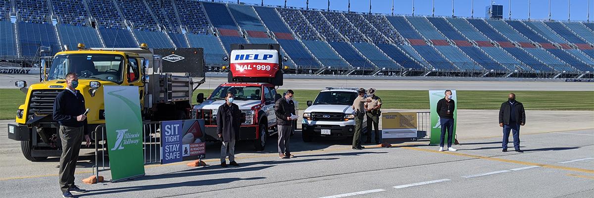 To help young drivers learn to stay safely in their cars if they become stranded on a high speed roadway, the Illinois Tollway and Illinois State Police traveled to the Chicagoland Speedway to demonstrate how much ground a fast-moving vehicle covers and how long it takes to...