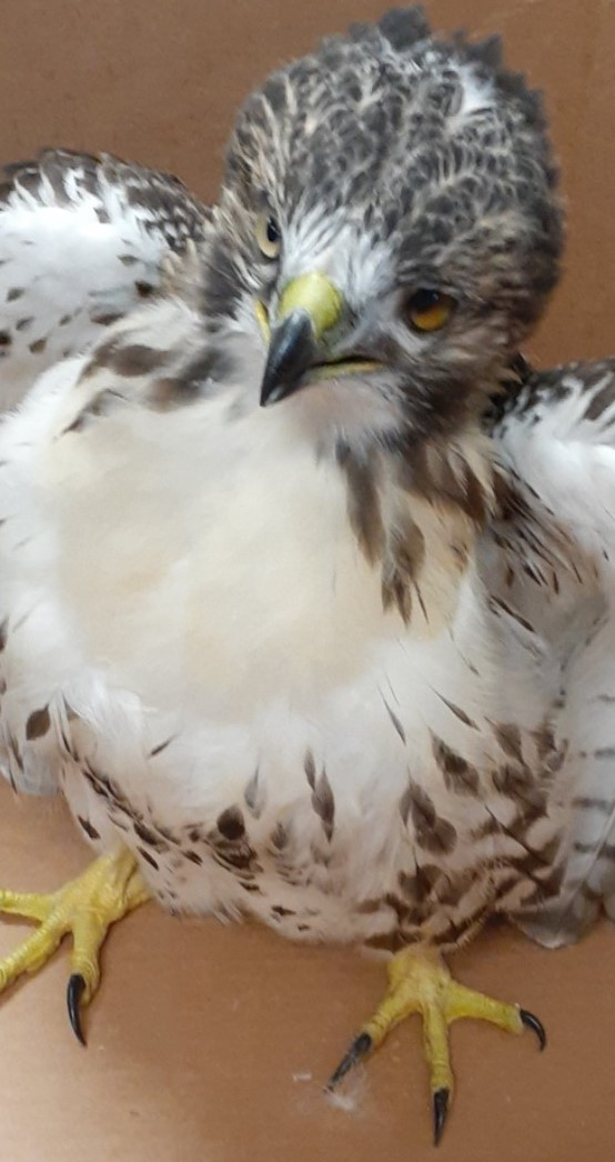 Raimonde safely captured the bird, who was agitated and ready rumble, while Caloia found a large box to serve as a cage. Once back at the Tollway maintenance site, supervisor Brian Fuqua went on the hunt to find a rehabilitation center. Eventually, he notified the Department of Natural Resources, and the hawk was picked up and delivered it to Flint Creek Wildlife Rehabilitation Center in Barrington.